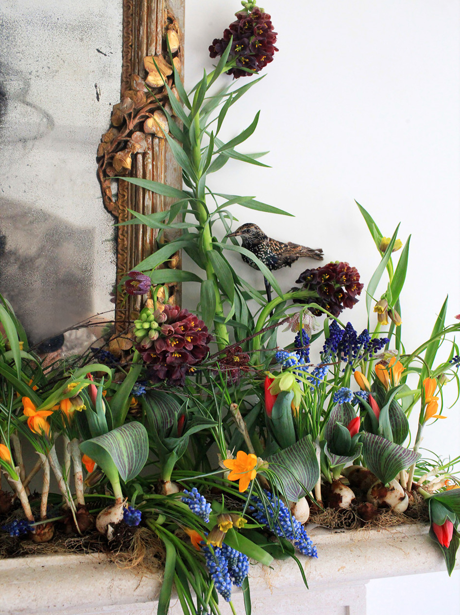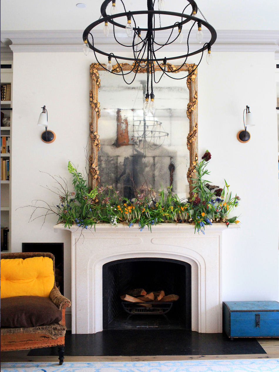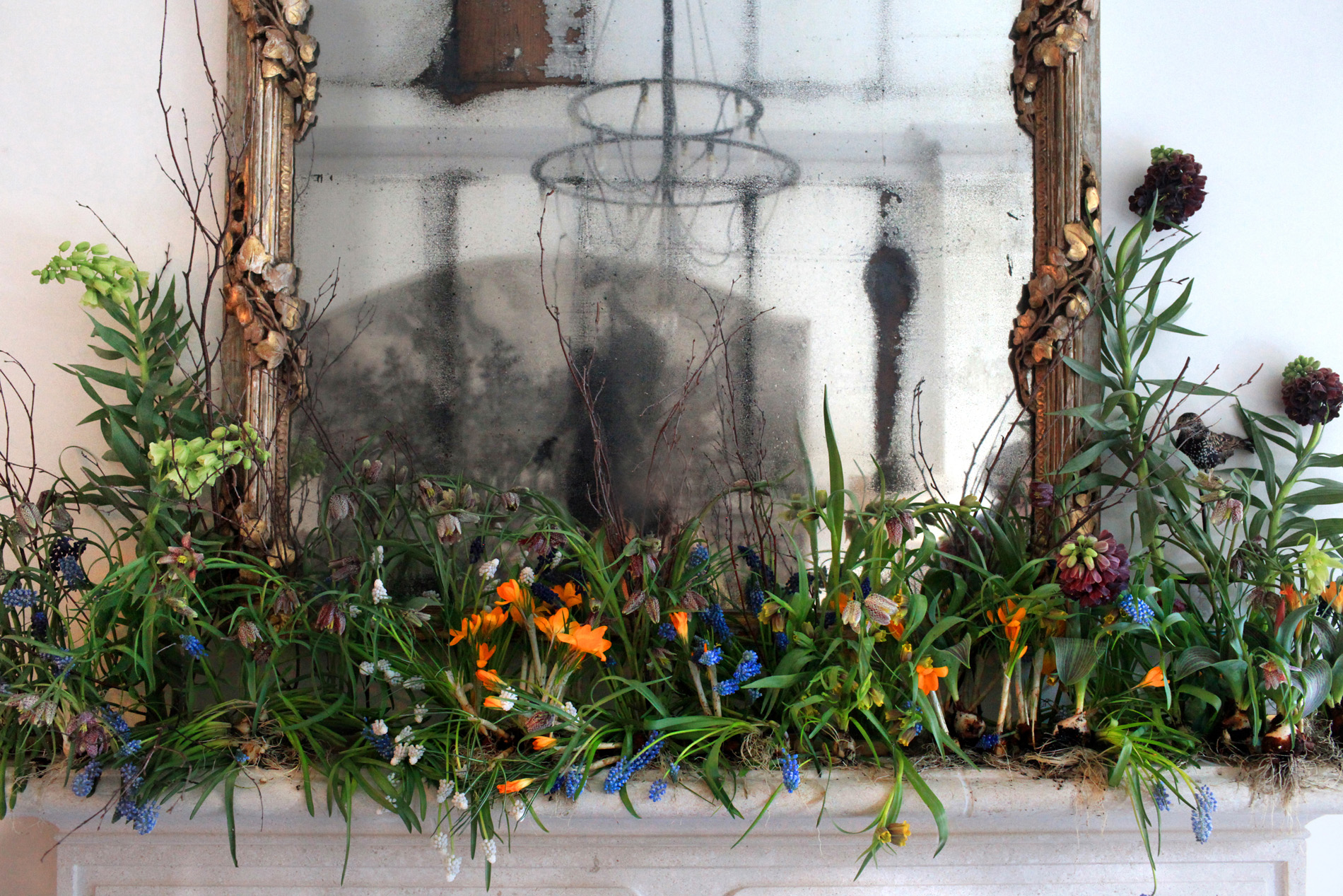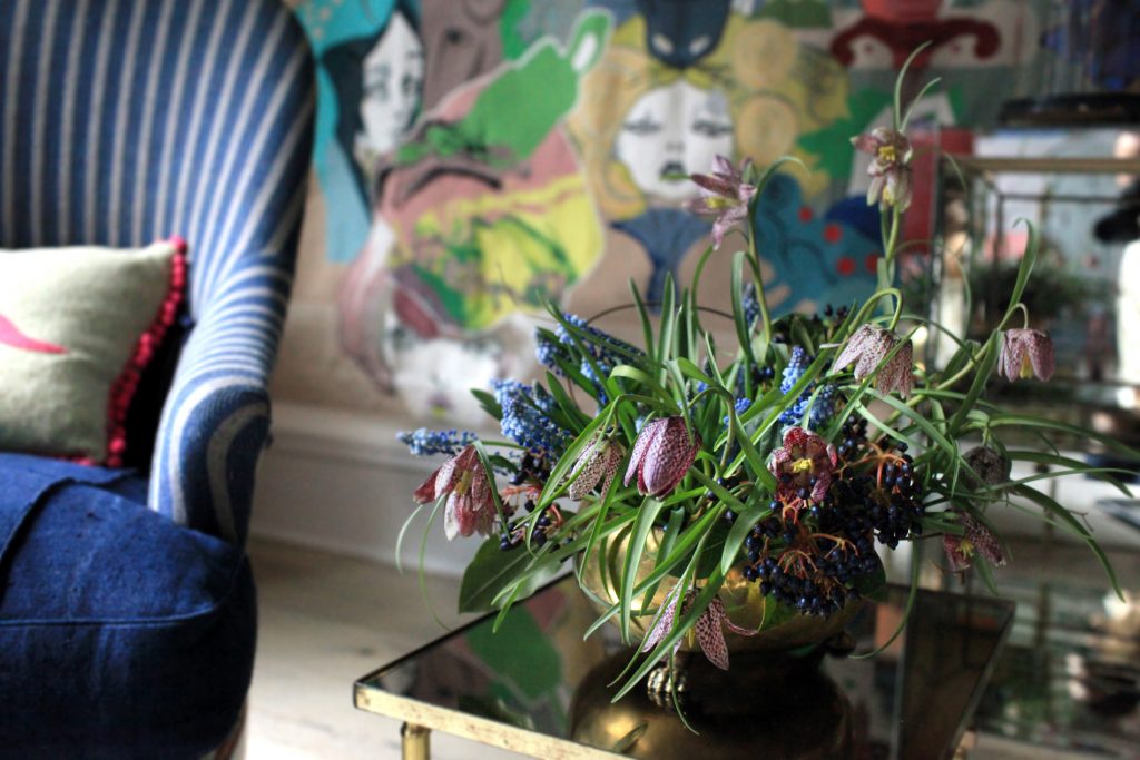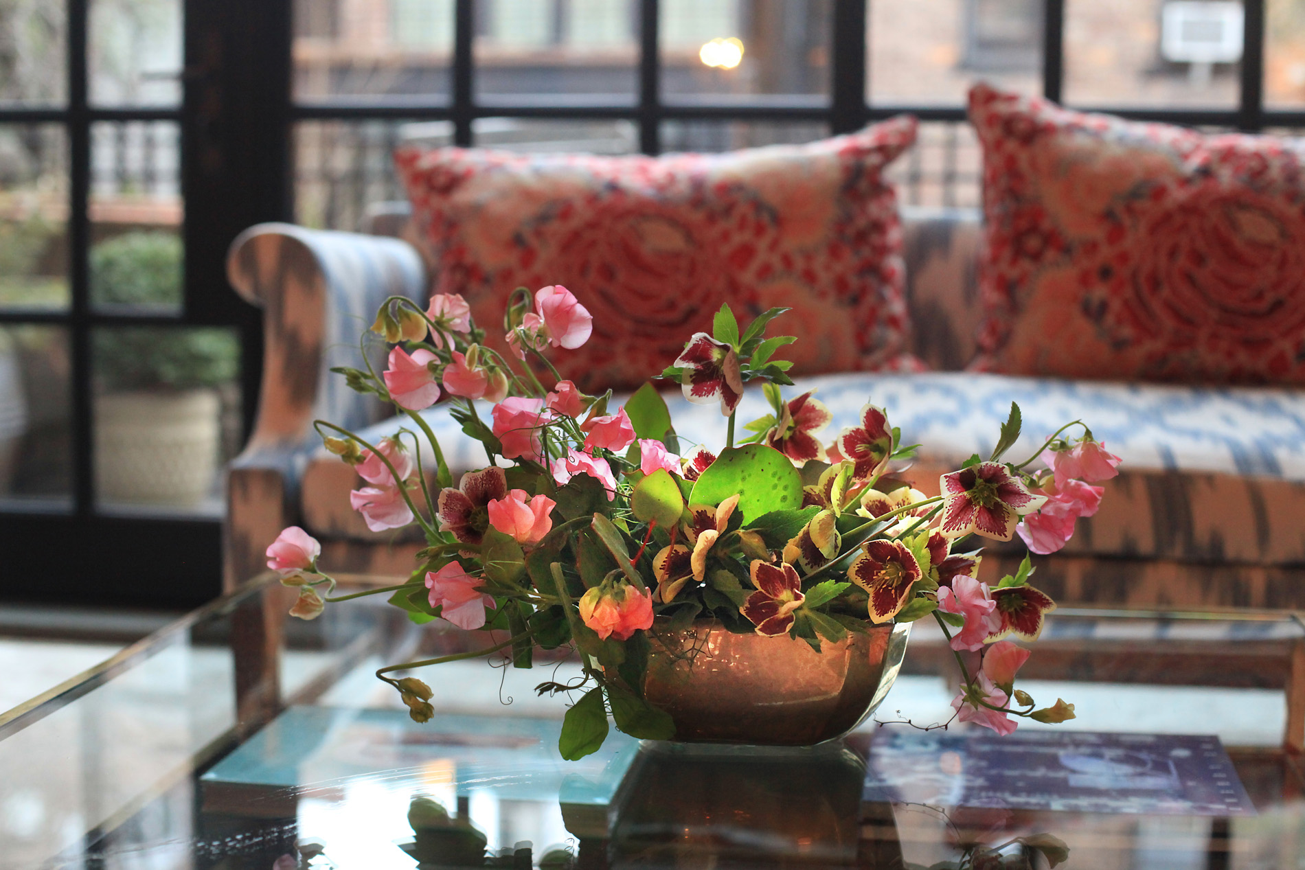 This West Village client gives us free reign and creative freedom for their home’s weekly flowers. We bring the family through the seasons with us, with an exuberant, playful feel that evokes the English garden of their homeland. This mantle of spring flowers on the bulb was designed for a light-hearted spring dinner party, an extension of the more informal weekly designs. Interiors designed by Poonam Khanna for the UnionWorks.