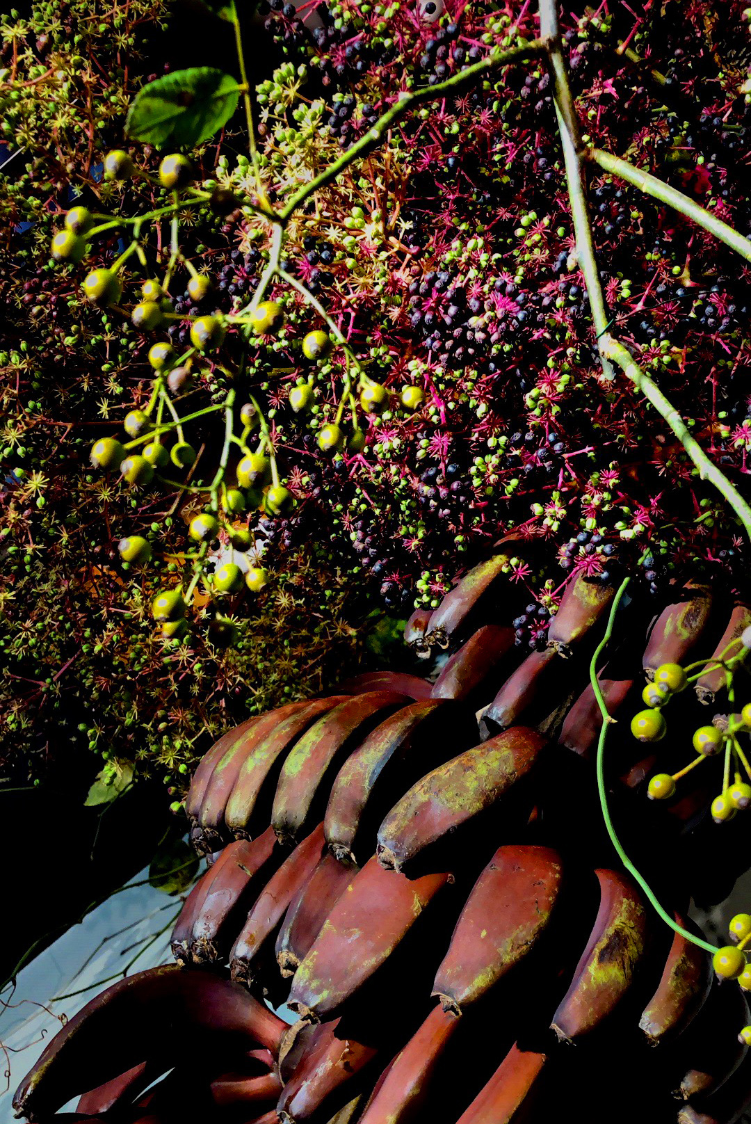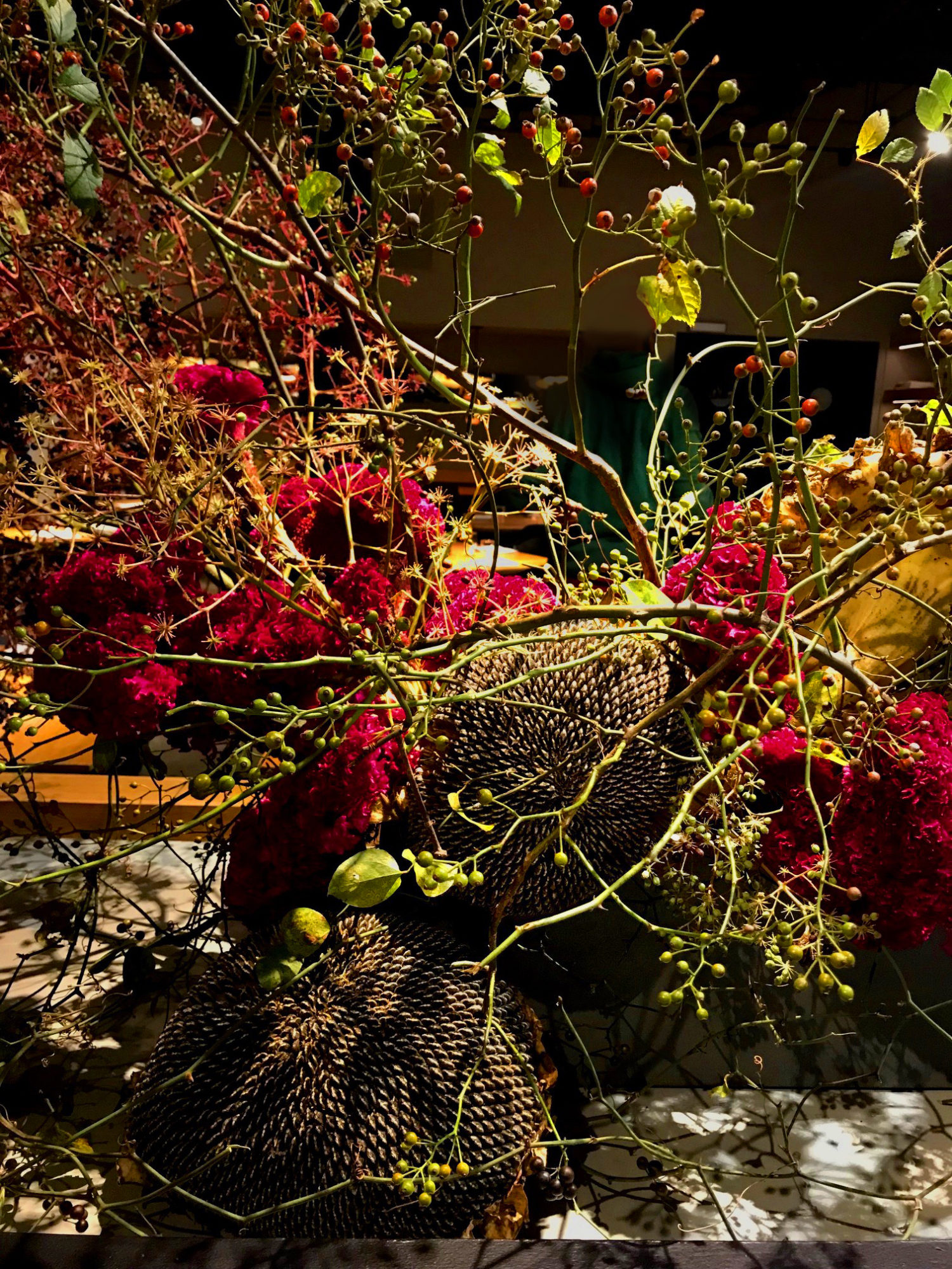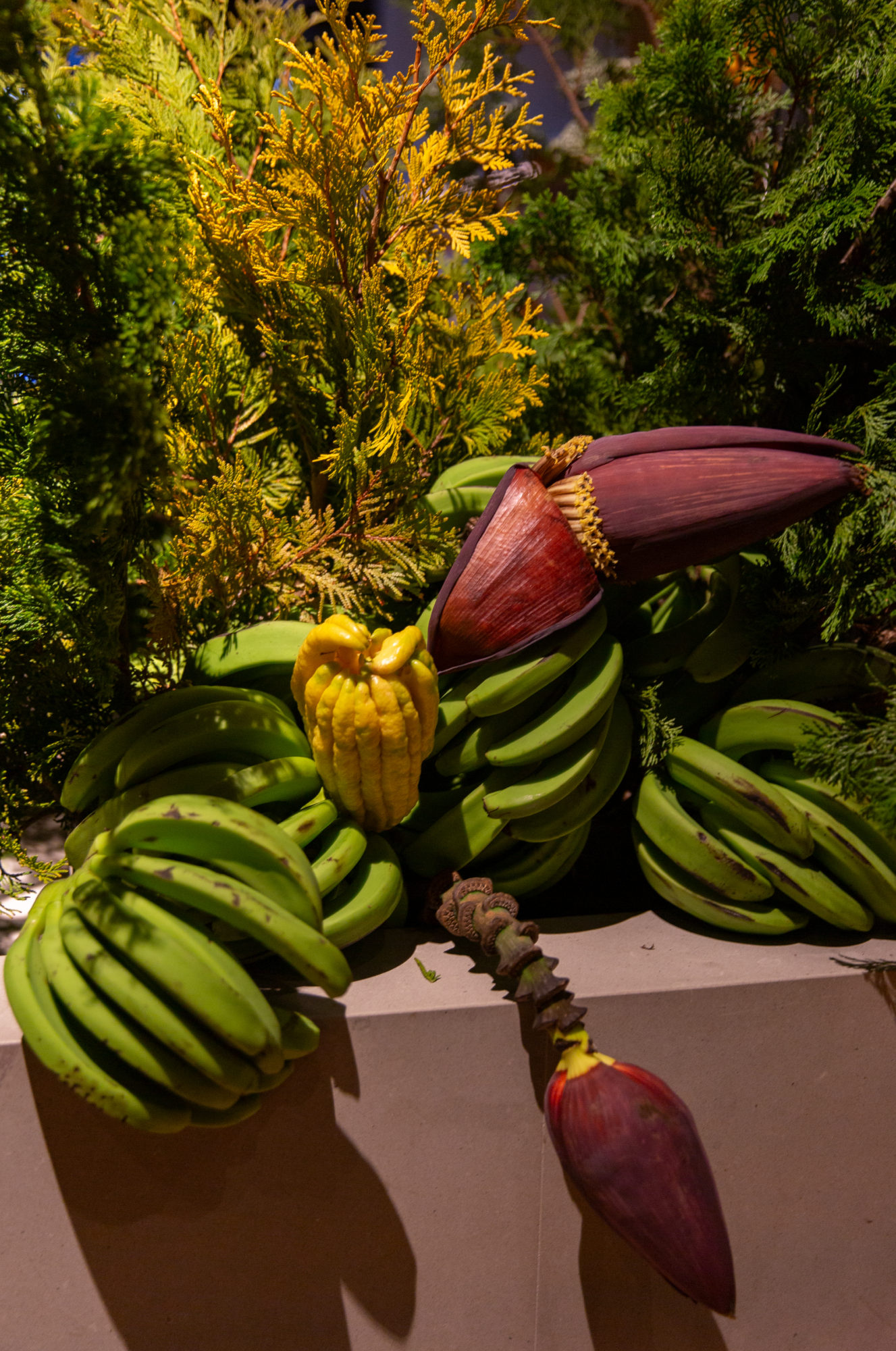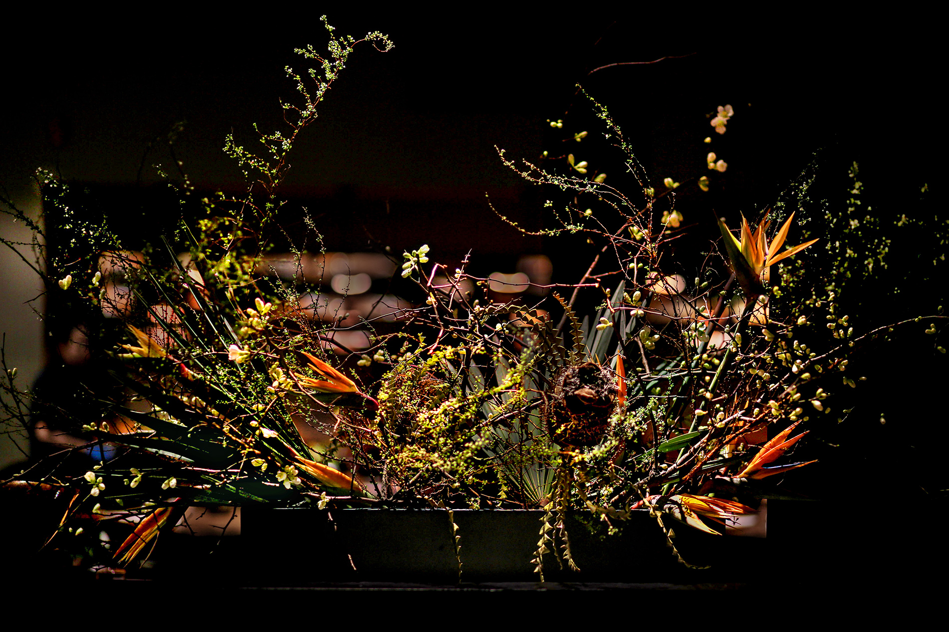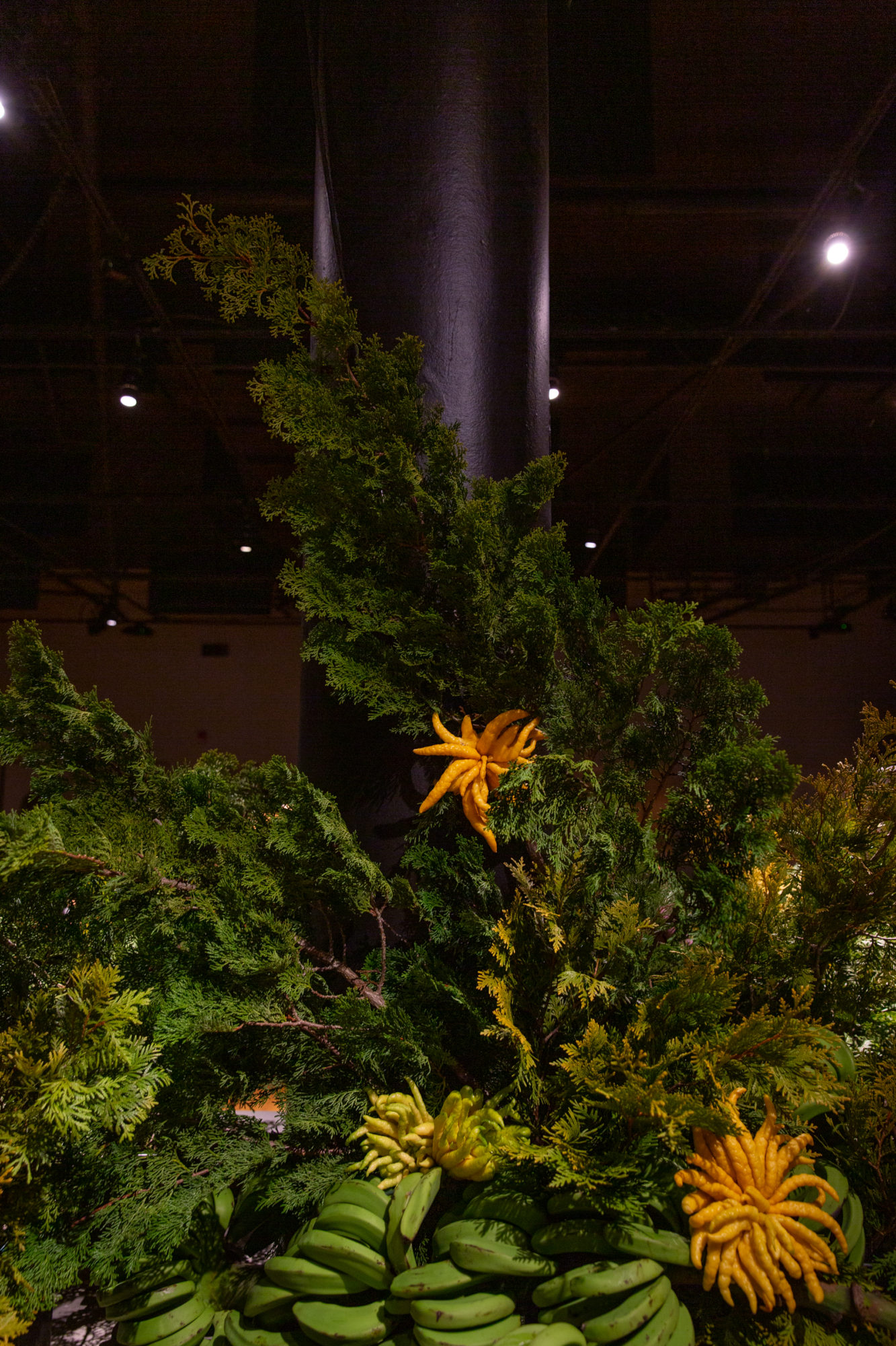 For Cosme, Enrique Olvera’s acclaimed New York restaurant, we marry the flora of the banks of the Hudson with those of different parts of the Mexican landscape. We invite the furry beast Heliconia “She-Kong” to drink at the trough with any number of Northern orchard branches, and weave palms through a thicket of Greenbriar.