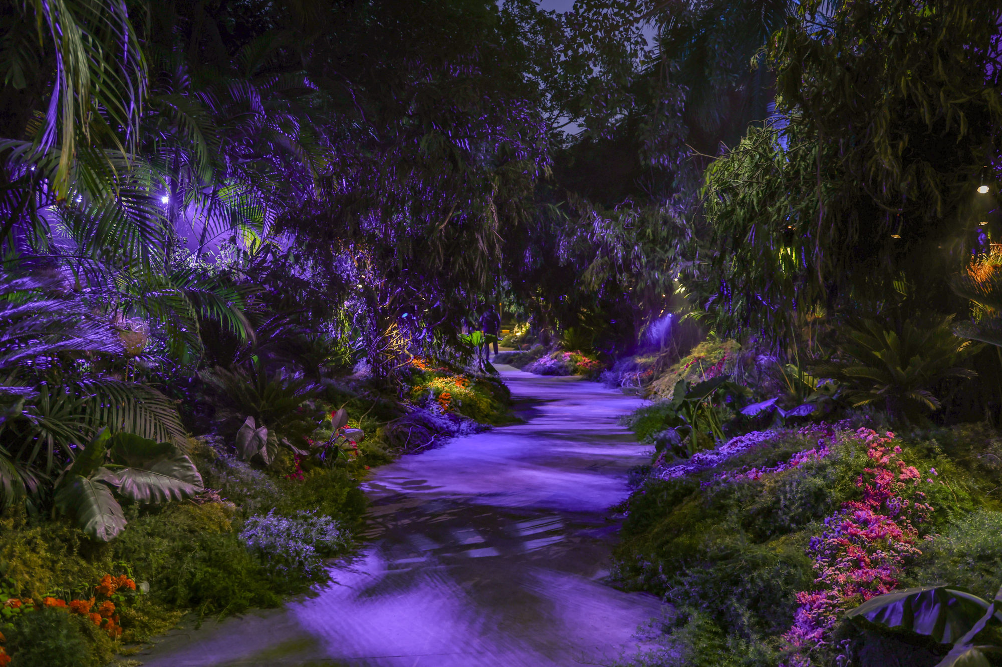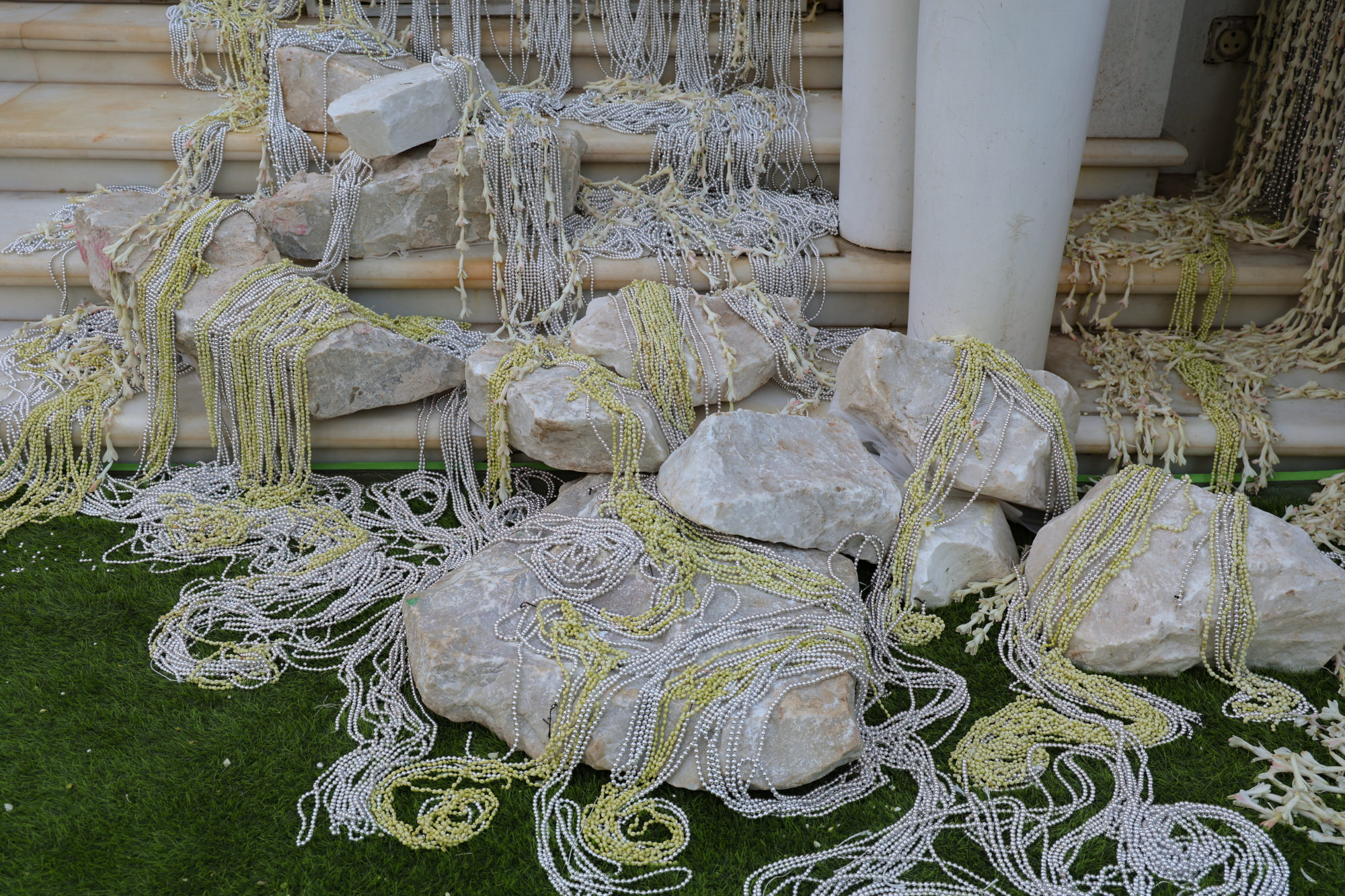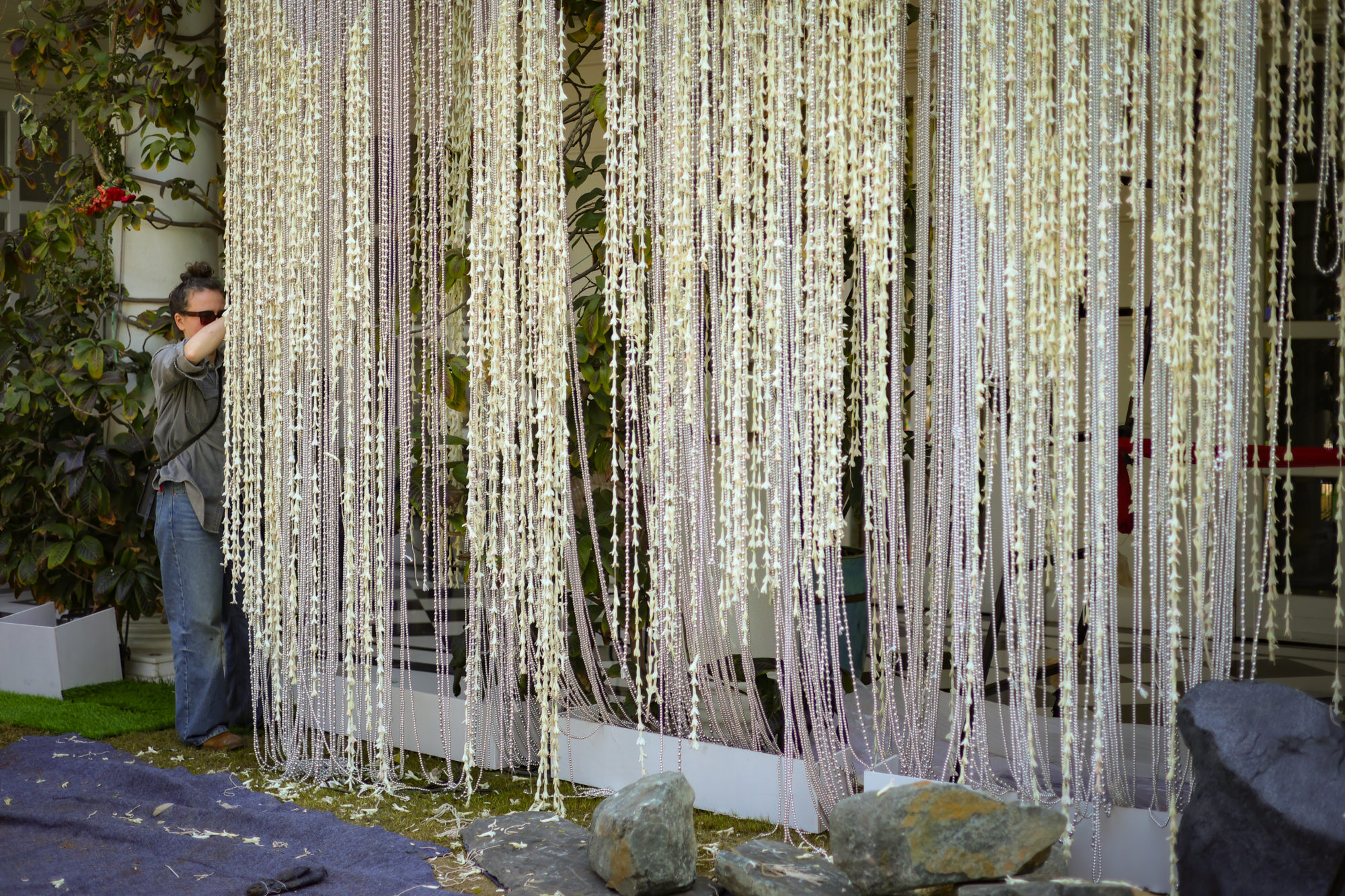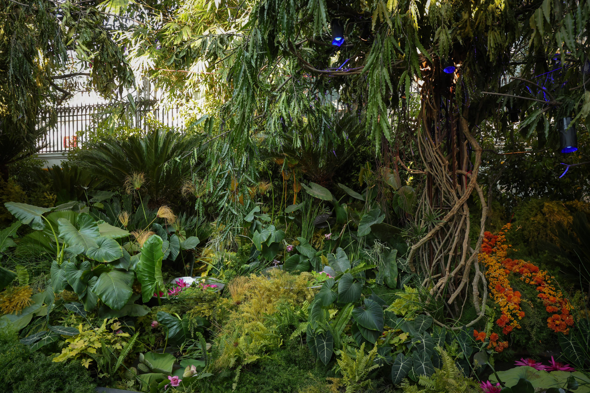 Much to my amazement, I was asked to visit India to imagine designs for a February celebration. I had long dreamed of visiting the subcontinent, and this adventure proved to be astonishing on every level. We created immersive designs for this private garden, transforming the existing façades, trees, lawns and driveways into forests, waterfalls and fantasy landscapes. We used 99% Indian grown plants and flowers, discovering our botanical muses in the local treetops, following the seasons through the fall, learning more and knowing less than ever.