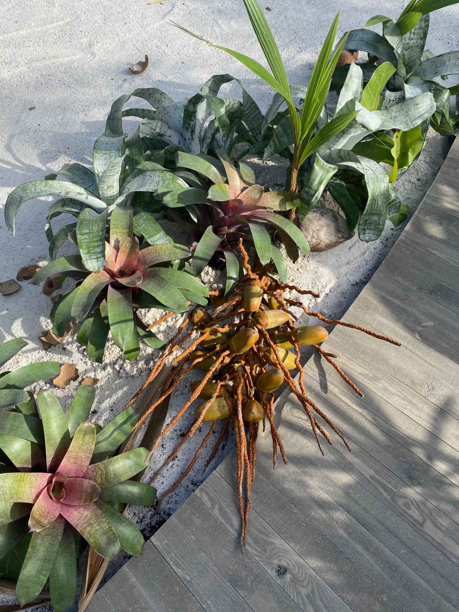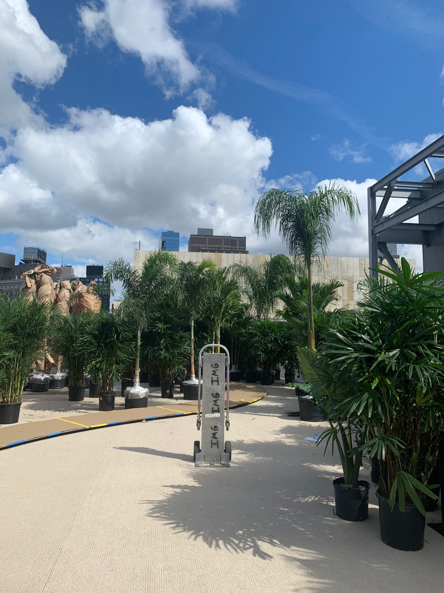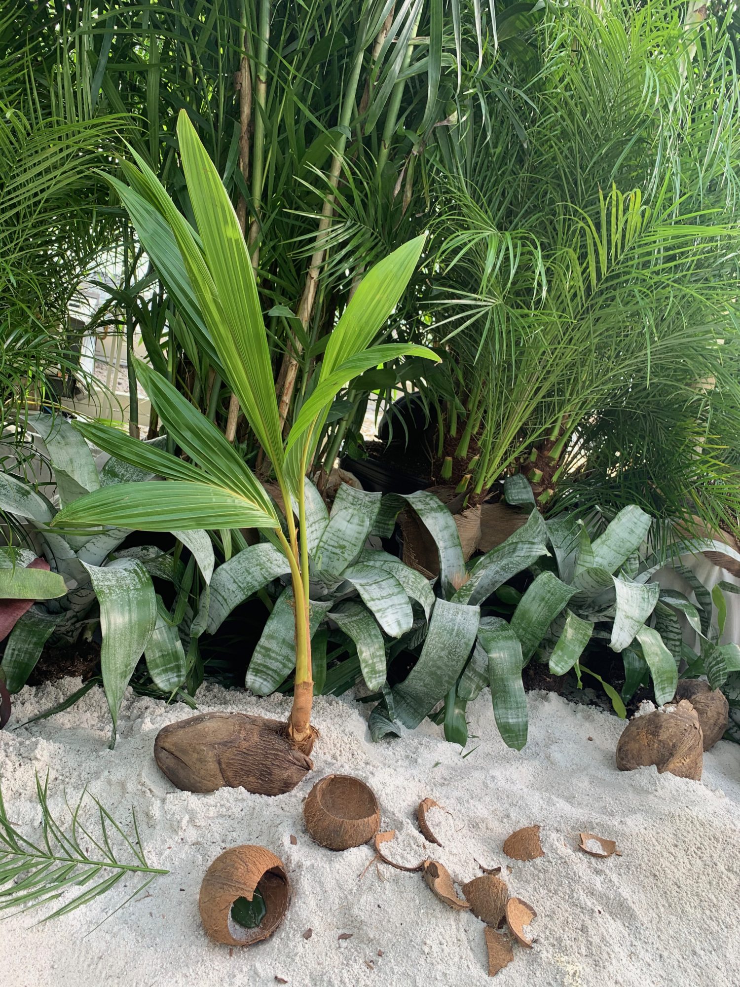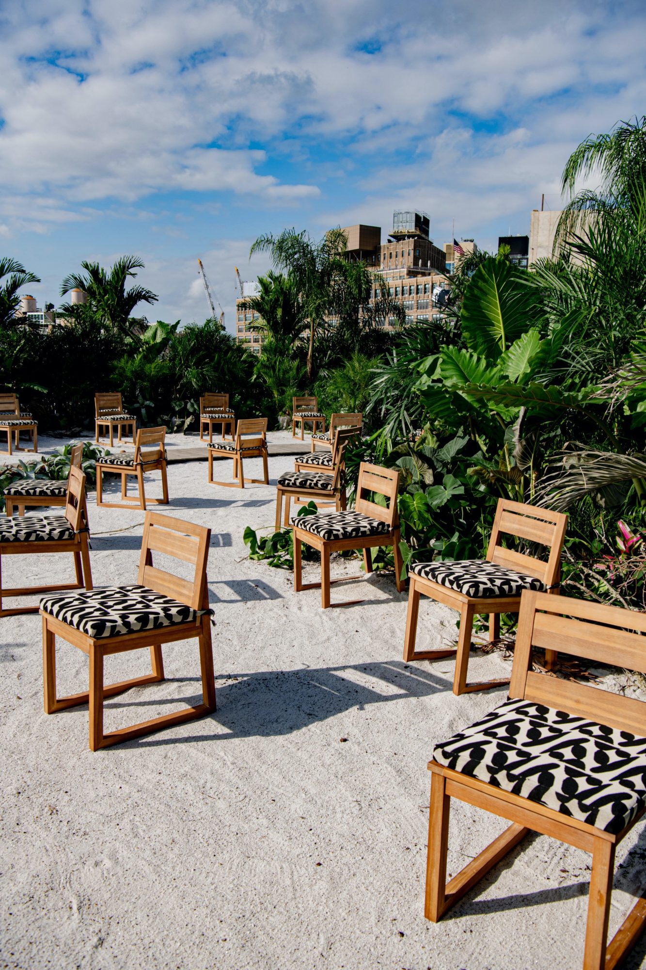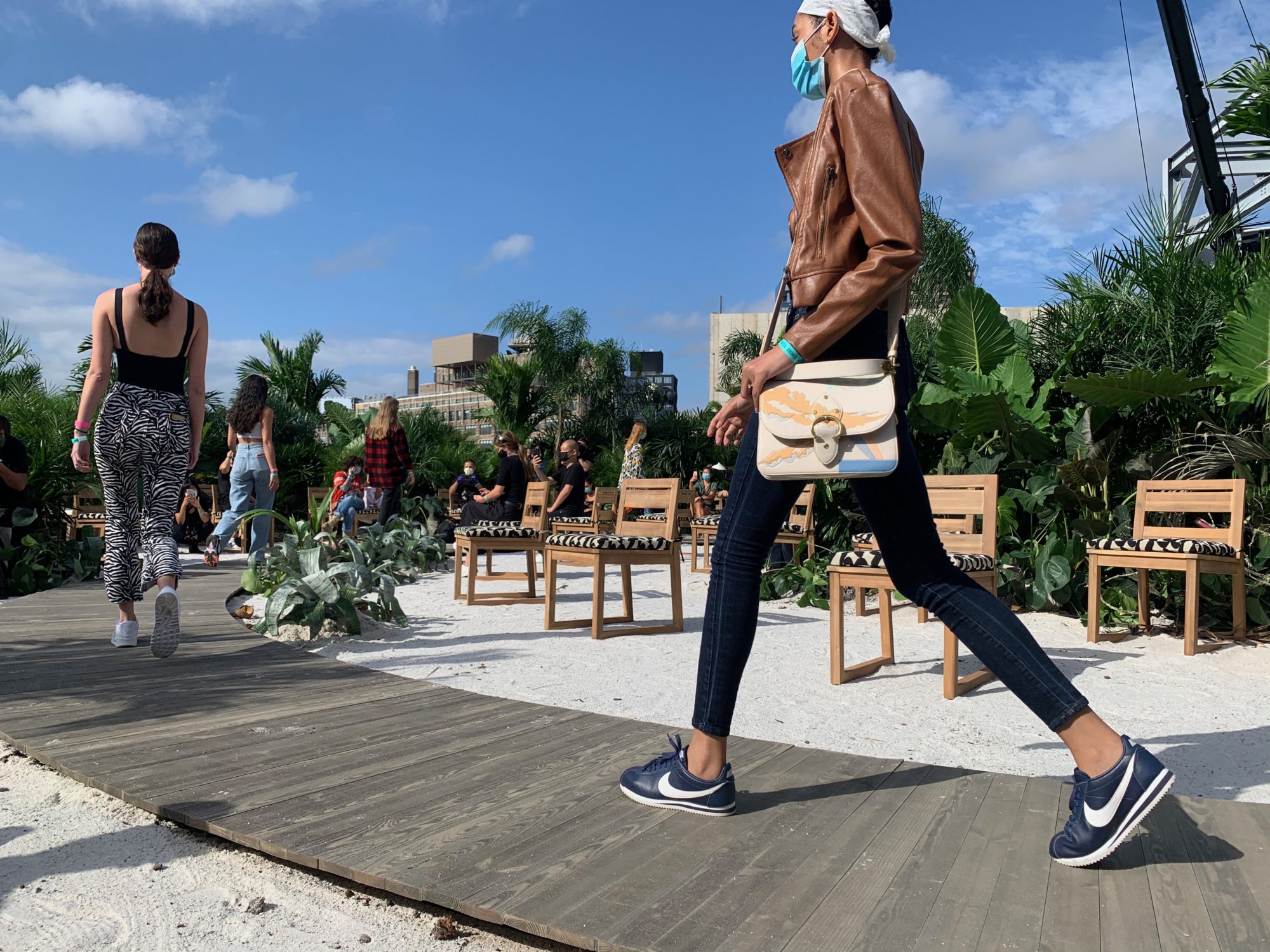 While 2020 wore on, we conjured Tulum in a runway jungle garden and beach as respite for weary, travel hungry New Yorkers. Massive 14 foot palms, giant alocasias, a bevy of stripey bromeliads and the odd coconut cluster made up some of the 900 or so plants we employed in the design. All were donated following the show.