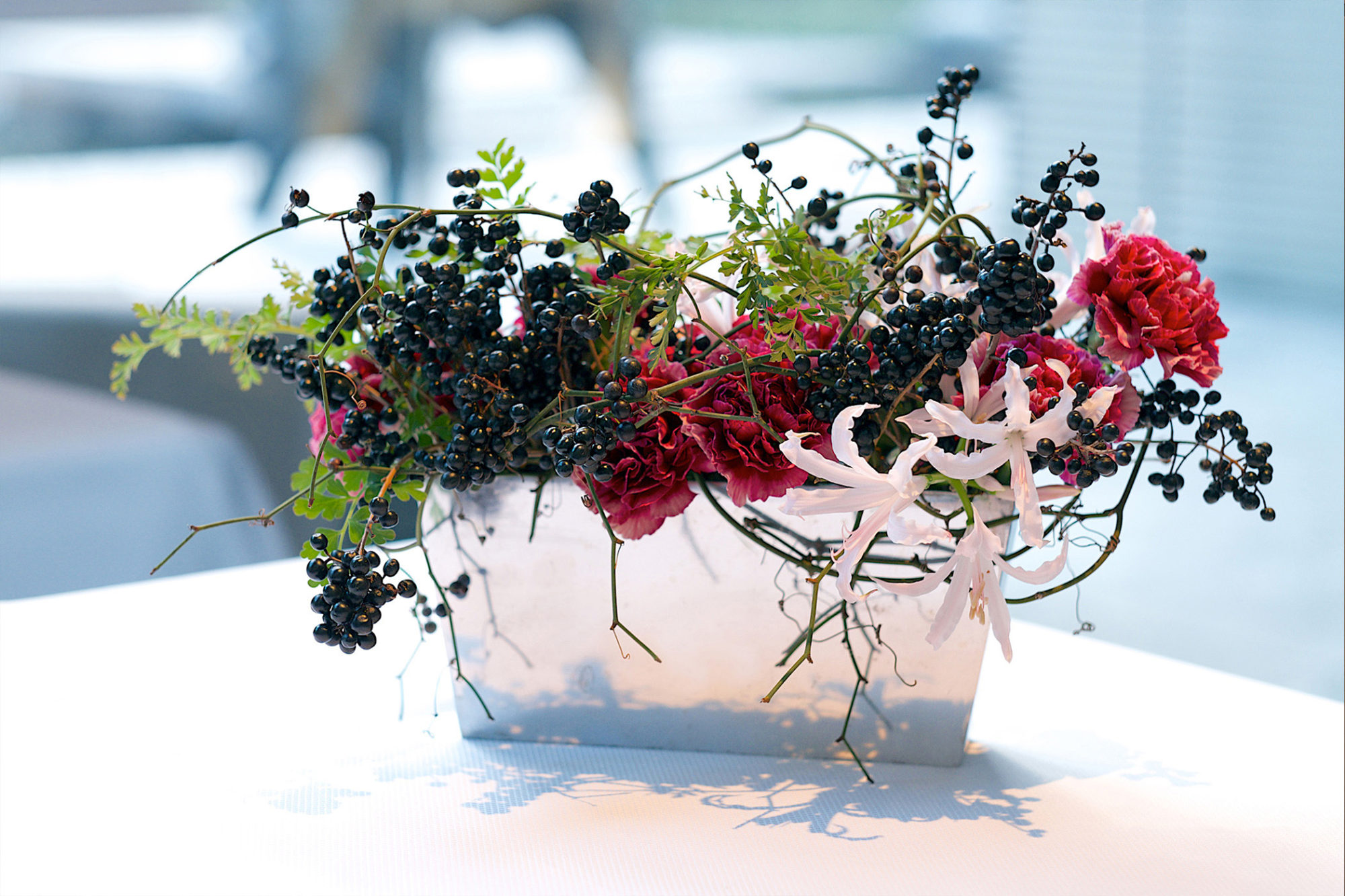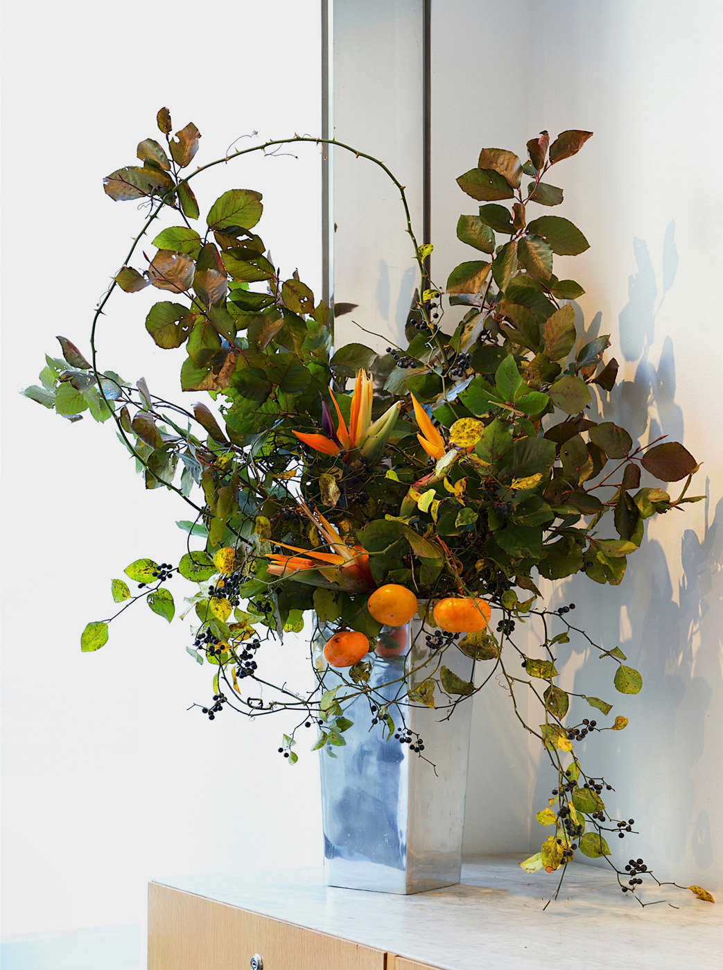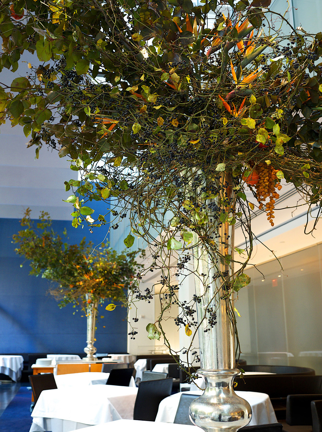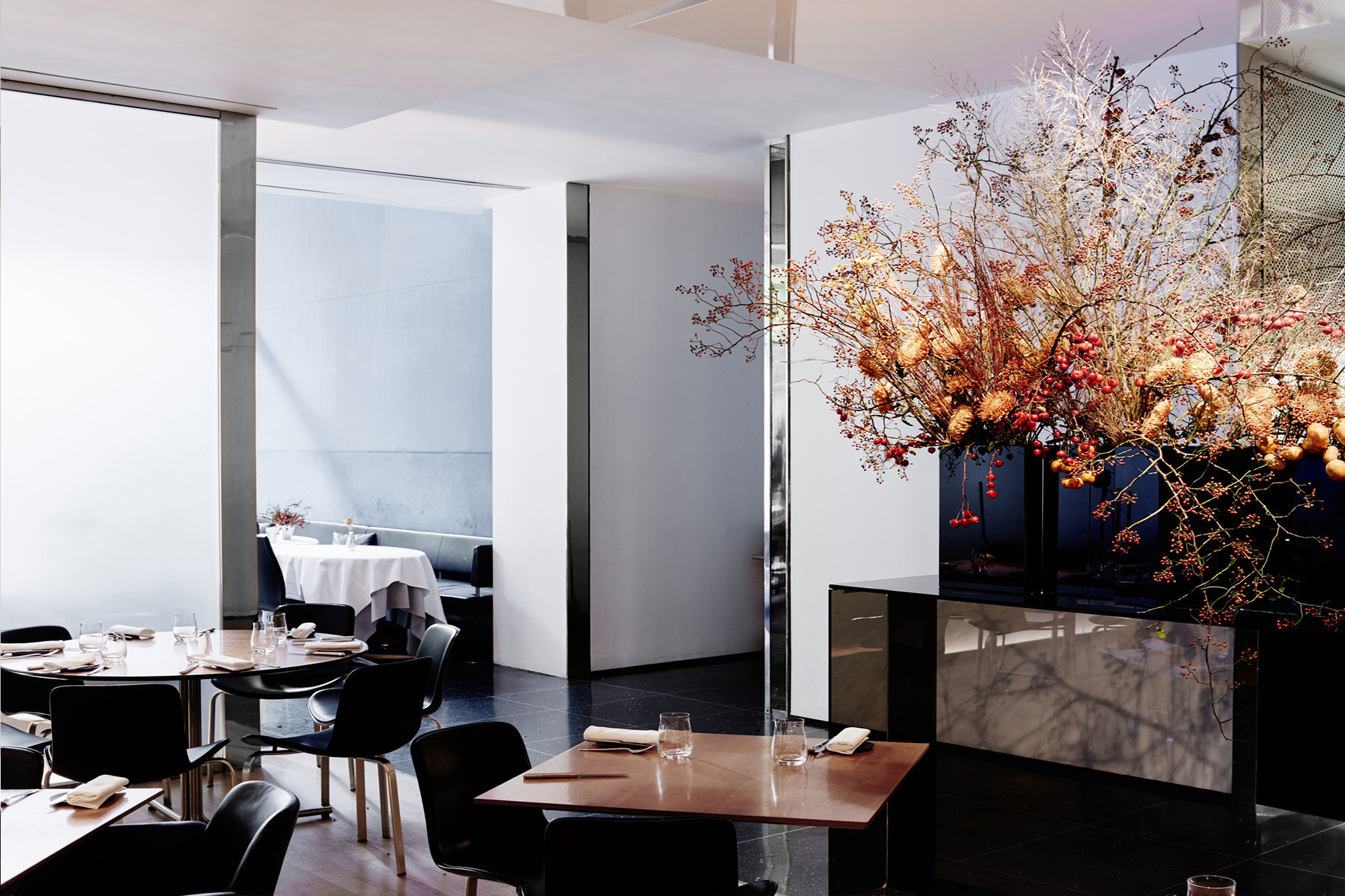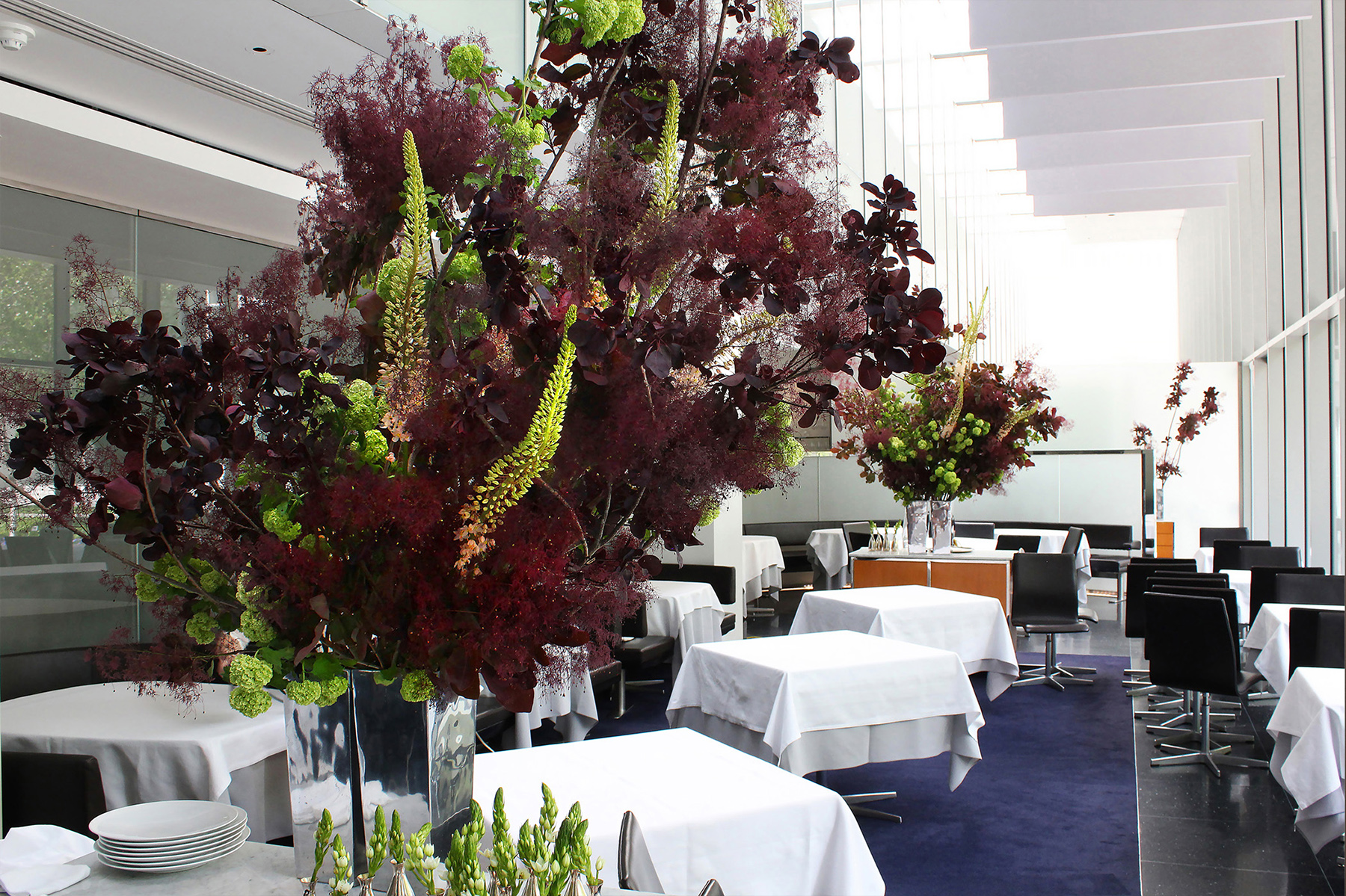 We conceived a weekly installation at The Modern, the two-Michelin starred restaurant at MoMA headed by chef Abram Bissell. The design inverts the landscape into these modernist spaces, our hands channeling wind and weather acting upon the forest and field. We contrive expressions of the wild outdoors, following the forms of branches, grasses and vines where they lead us, and finally populating them with birds, hares and reptiles in the form of flowers. These sculptural pieces are designed in direct conversation with the sculpture garden outside.